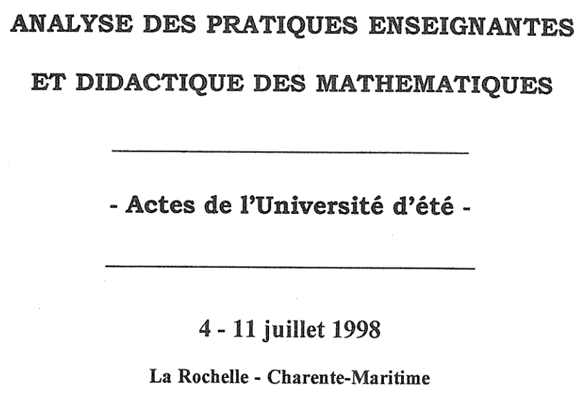 Quelques débats, souvent passionnées au sein même de la commission inter-IREM de didactique, on montré qu'il y avait des interprétations divergentes des concepts didactiques se révélant en particulier dans l'analyse et l'évaluation des conduites enseignantes. Ceci explique que les organisateurs de l'UE aient fait appel à des créateurs de théorie didactique et à des chercheurs les connaissant bien, pour que ceux-ci puissent montrer l'intérêt théorique et pratique de ce qui se fait dans ce domaine de recherche, en espérant qu'ainsi puisse être levées certaines ambiguïtés d'interprétation de leurs travaux.